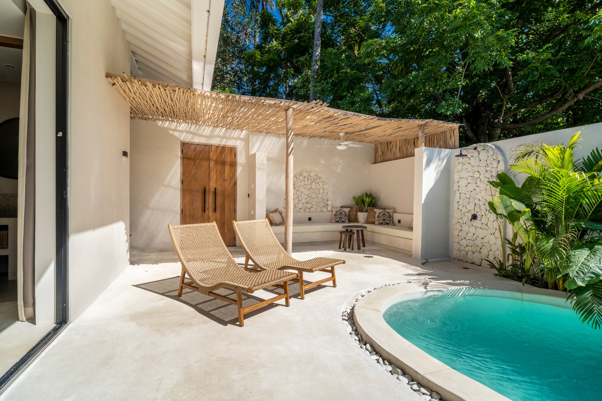 Koham Villas offers a two-bedroom sanctuary with a private pool, open-air living space, and serene natural surroundings — perfect for couples or small families.